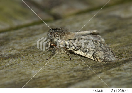 生き物 昆虫 セダカシャチホコ、開張七センチほどの大型のシャチホコガ。オスは櫛状の触角を持つ