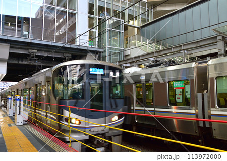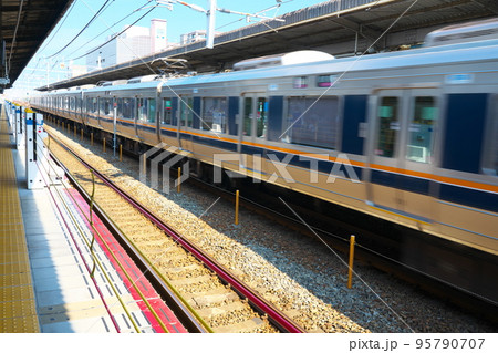 JR明石駅ホームと発車する松井山手行き普通電車 兵庫県明石市