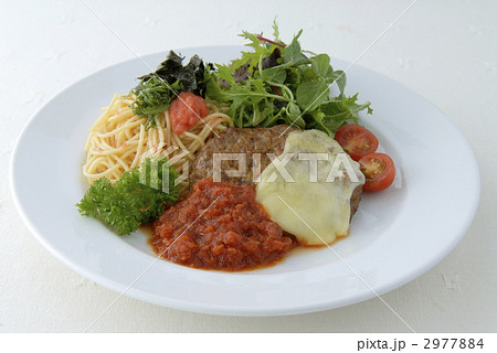チーズハンバーグステーキパスタ添え