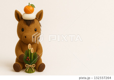 鏡餅とかわいい馬の年賀イラスト