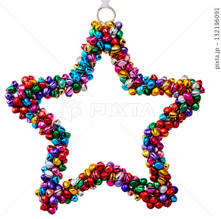 カラフルな鈴の星型オーナメント(クリスマス装飾・白背景)