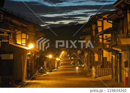 【奈良井宿の町並み (早朝)】 長野県塩尻市奈良井