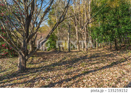 冬の山林風景 奈良県明日香村