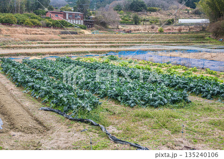 冬の明日香村の棚田風景 奈良県