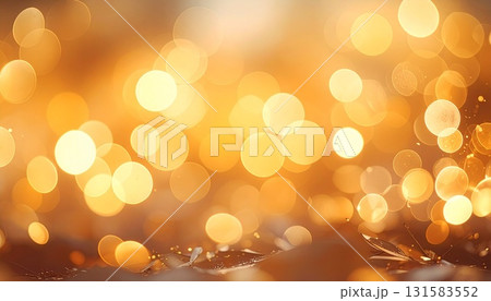 暖かいゴールドのボケ光が揺らめくシネマティックな抽象背景