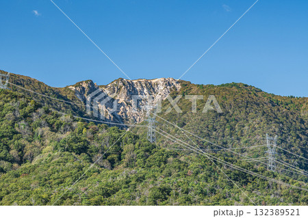 麓から見上げる野坂山地のガレ場 明王の禿 滋賀県高島市マキノ町