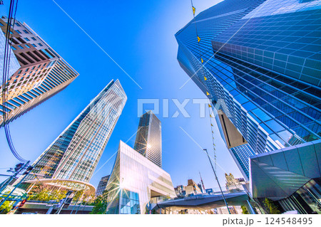 日本の東京都市景観 希望の光…虎ノ門ヒルズステーションタワー(虎ノ門ヒルズ駅)横に港区立明舟公園誕生
