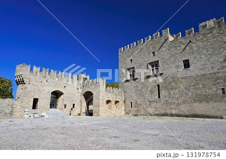 Beautiful old town of Rhodes on the Greek island of Rhodes. Beautiful historical architecture with castle, shops and cafes. Concept for travel and vacation.