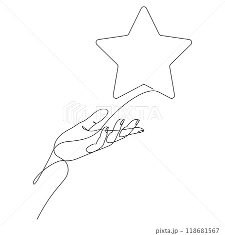 Continuous one line drawing of human hand holding star. Satisfaction customer concept. Vector illustration with editable stroke.