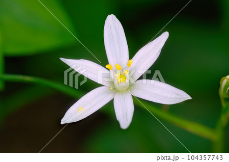 花壇で栽培されているオーニソガラム・ウンベラタムの春に咲く白い花