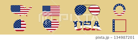 Summer vector illustration of a set of sunglasses with oval and star shaped glasses. Beach Accessories on isolated blue background. Perfect for garments, summertime, beach vacations, outdoor designs.