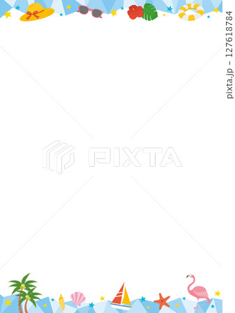 夏と海をイメージした縦型の上下のフレームイラスト_青