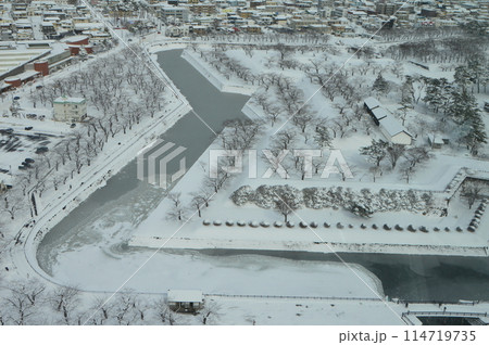 五稜郭タワーの展望台1Fから見た雪の五稜郭(北海道函館市五稜郭町44)