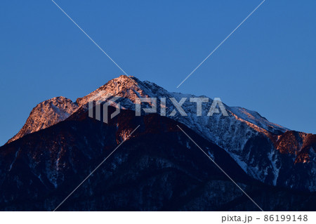 北杜市白州町、甲斐駒ケ岳摩利支天に雲を染めて沈む太陽