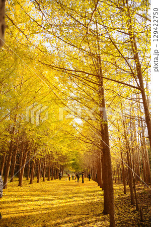紅葉したイチョウの並木道