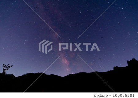 澄んだ夜空に広がる天の川と山影のシルエット
