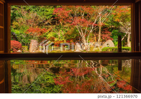 【湯布院】紅葉が窓に映り込んだ茶屋