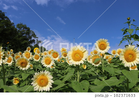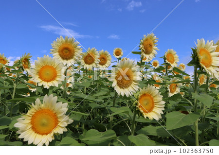 青い空がよく似合う白いひまわりはホワイトナイトー七