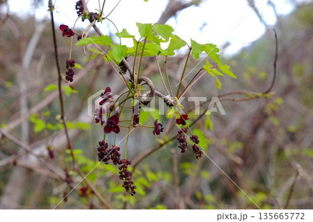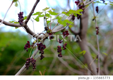 三つ葉アケビの紫の花咲く 【相模原市津久井 4月】