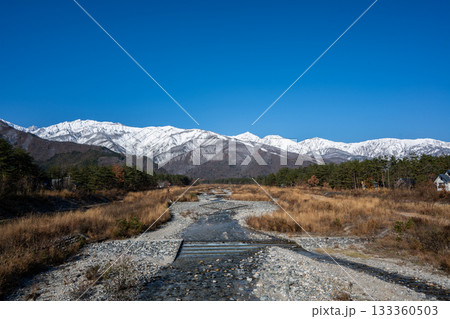 冠雪した晩秋の北アルプス 長野県白馬村