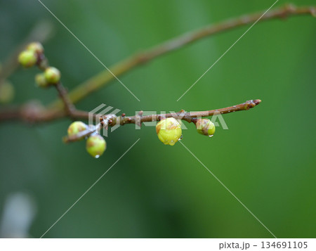初冬 開きそうなロウバイのつぼみ