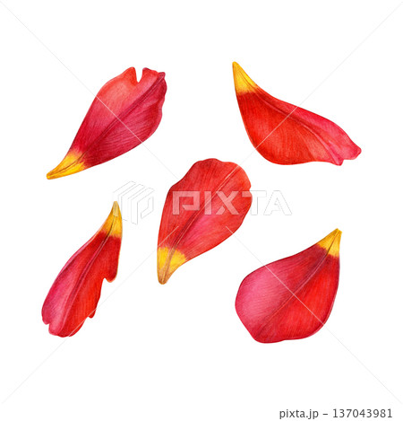 Watercolor illustration of yellow-red tulip petals with soft shading. Ideal for patterns, prints, packaging, wedding stationery and floral design