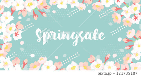 春のセールデザイン | 桜とポップな背景 ( ベクター素材 バナー )