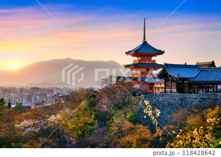 Kiyomizu temple at sunset in Kyoto, Japan.