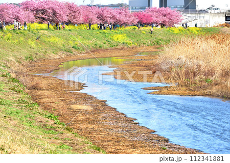 茅ヶ崎小出川土手に咲く河津桜と菜の花