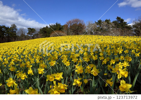 ロマンチック茨城(地中海原産の水仙の花がひたち海浜の陽と風を受け丘一面に輝く。)国営ひたち海浜公園