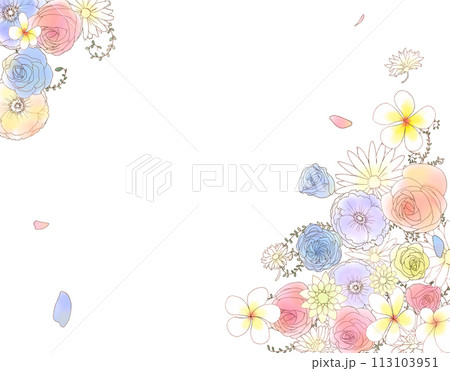 バラと舞い散る桜の花びら。ウェディングやギフトに最適な背景素材