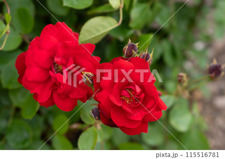 初夏のバラ園、真っ赤なリリーマルレーン