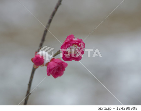紅梅開花 バラ科の園芸品種大盃