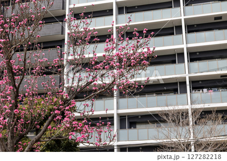 花桃(照手桃)と集合住宅