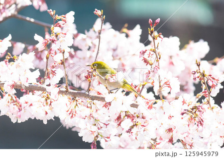 小彼岸桜とメジロ