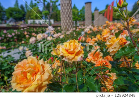 神戸市の須磨離宮公園にある庭園の満開のバラ