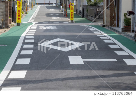 道幅が狭い危険な通学路イメージ|事故多発の注意看板イメージ|大阪府大東市