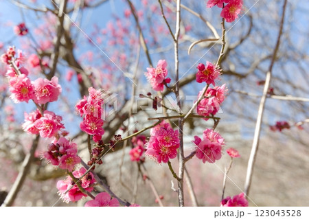 穏やかな春の日に咲く紅梅 早春イメージ