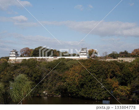 明石市、明石城太鼓門跡と坤櫓の遠景