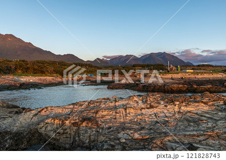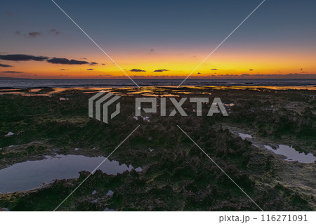 朝焼けと隆起サンゴ礁 洋上アルプス屋久島(冬