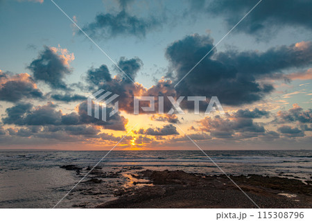 初日の出と隆起サンゴ礁 洋上アルプス屋久島(冬