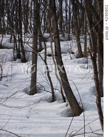写真、春を待つ岩手県岩洞湖雪原風景 春の光に喜ぶ本州一寒い岩洞湖