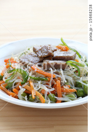 春雨を炒めた伝統的な韓国料理 チャプチェ ( 雑菜 )