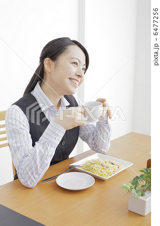 デスクで食事をする女性社員 OL ビジネスマン サラリーマン パソコン オフィスイメージ ビジネス