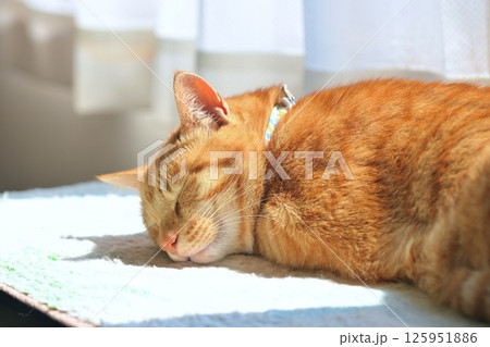 暖かい部屋で気持ち良さそうに眠る飼い猫