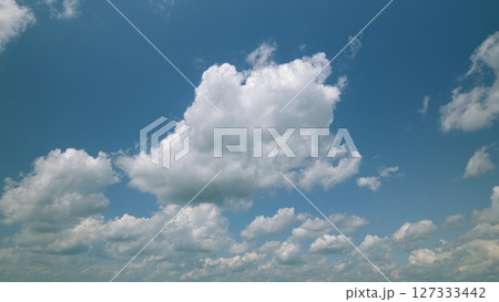 Time lapse. A Beautiful Blue Sky adorned with Fluffy White Clouds that inspire feelings of peace and serenity