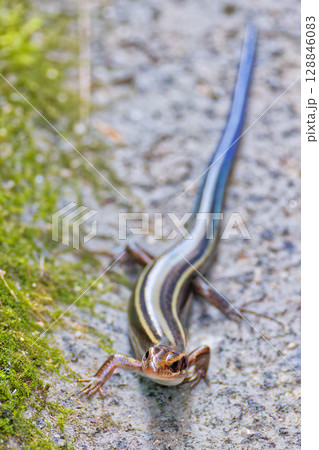 鮮やかな青色の尻尾を持つニホントカゲ幼体