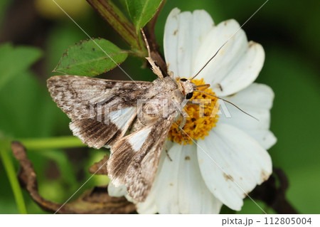 生き物 昆虫 ナカジロシタバ、セセリチョウのようにも見えるガ。前翅は保護色、後翅は白斑が目立つ