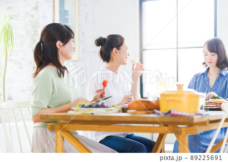 ホームパーティー カジュアルパーティー 食卓を囲むグループ イメージ素材