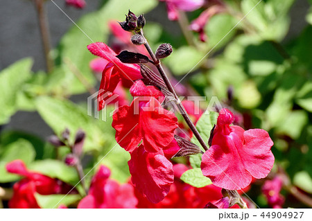 三鷹の花 植物 三鷹仙川遊歩道に咲く赤色のサルビア・ミクロフィラ